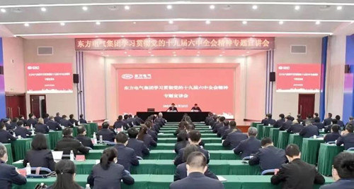 本網訊 12月25日,東方電氣集團舉行學習貫徹黨的十九屆六中全會精神專題宣講會,持續深入學習領悟全會精神,凝聚思想共識,激發奮進力量。黨的十九屆六中全會精神中央宣講團成員、中共中央政策研究室原副主任施芝鴻作六中全會精神專題宣講。集團公司黨組書記、董事長俞培根主持宣講會。黨組成員徐鵬、宋致遠、張繼烈、袁明剛參加宣講會。