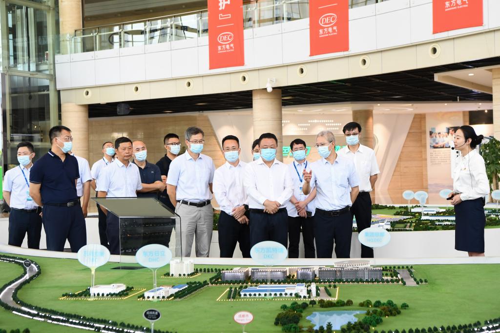 座談前,李英峰一行參觀了東方電氣科技展示廳,詳細(xì)了解了東方電氣集團(tuán)歷史沿革、產(chǎn)業(yè)布局、科技創(chuàng)新等方面情況。