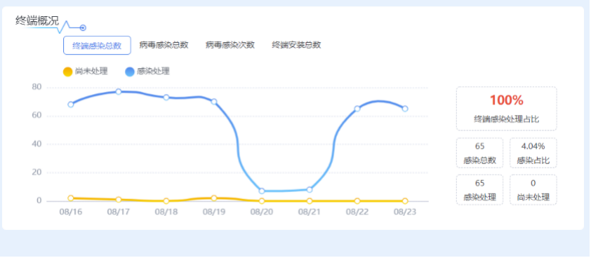 完成集團總部園區所有終端和服務器的統一部署,利用終端安全管理系統實現對指定IP范圍內終端設備的軟硬資產快速發現、自動識別與歸類。終端接入落實訪問控制措施,后臺系統實時監測終端運行狀態,定時提醒用戶更新系統漏洞。