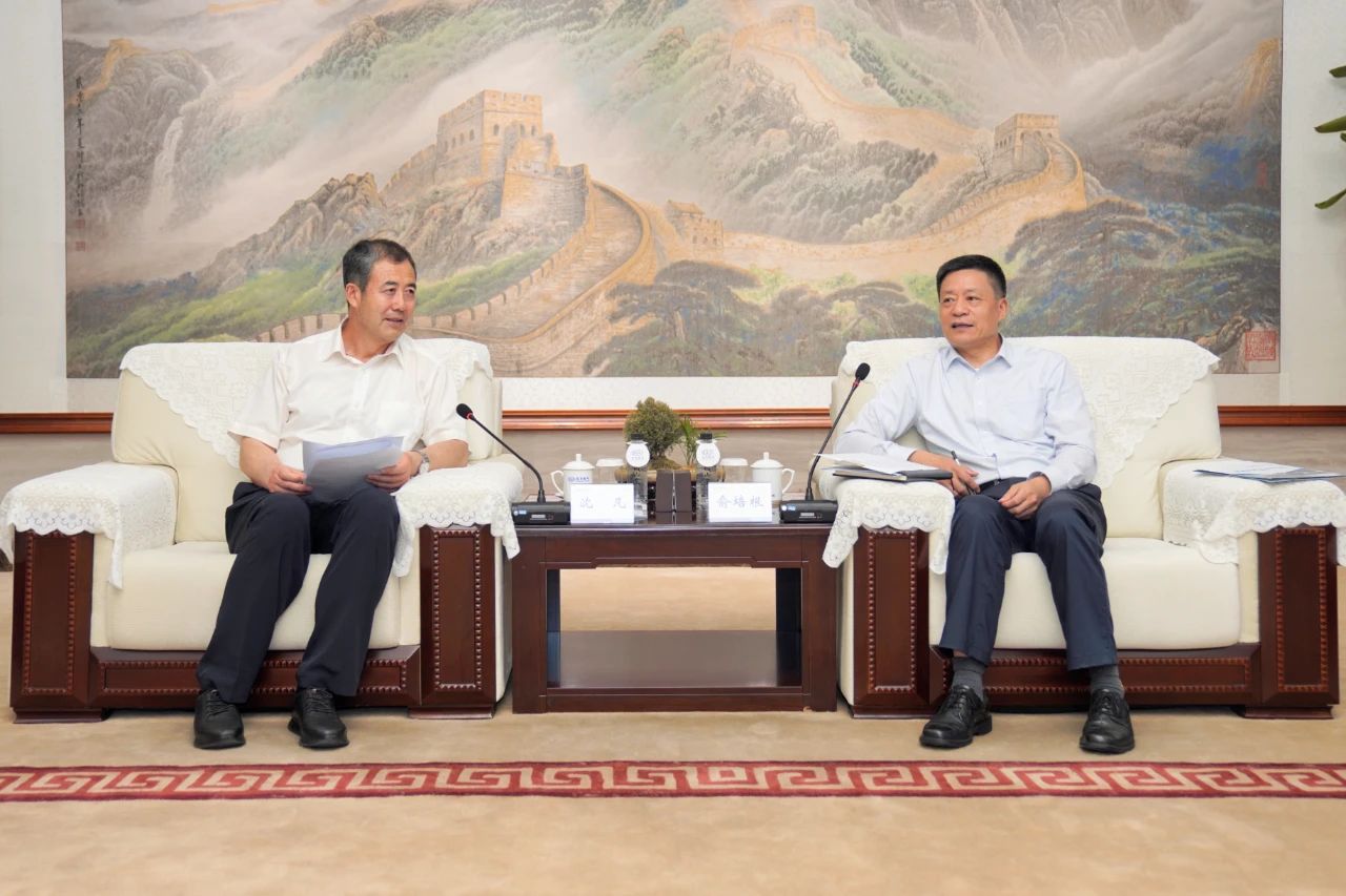 本網訊 6月30日,寧夏回族自治區人大常委會副主任沈凡訪問東方電氣集團,受到集團公司黨組書記、董事長俞培根的熱情接待,雙方就進一步加強央地合作、共同推進高質量發展進行友好座談交流。東方電氣集團黨組成員、總會計師劉智全參加會談。