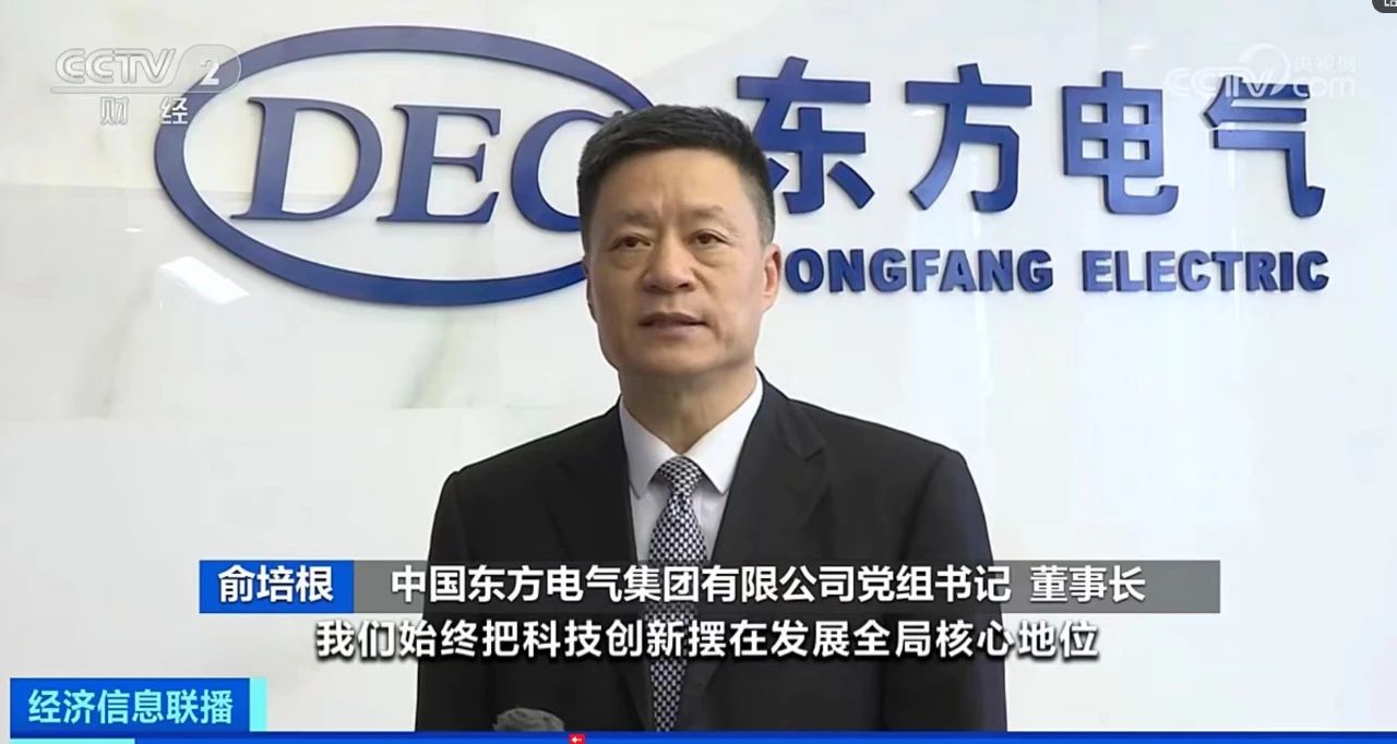 央視財經頻道《經濟信息聯播》報道中提到,中國企業傳播負責任創新理念,以榜樣的力量引導科技向善發展。東方電氣集團黨組書記、董事長俞培根接受采訪時表示:“我們始終把科技創新擺在發展全局核心地位,以綠色低碳技術創新助力雙碳目標實現”,近年來,東方電氣加快綠色低碳和數字化轉型,自主研制了白鶴灘、G50燃機、示范快堆等一大批大國重器,著力打造原創技術策源地和現代產業鏈鏈長,自覺履行高水平科技自立自強的責任擔當,以綠色低碳技術創新助力“雙碳”目標實現。