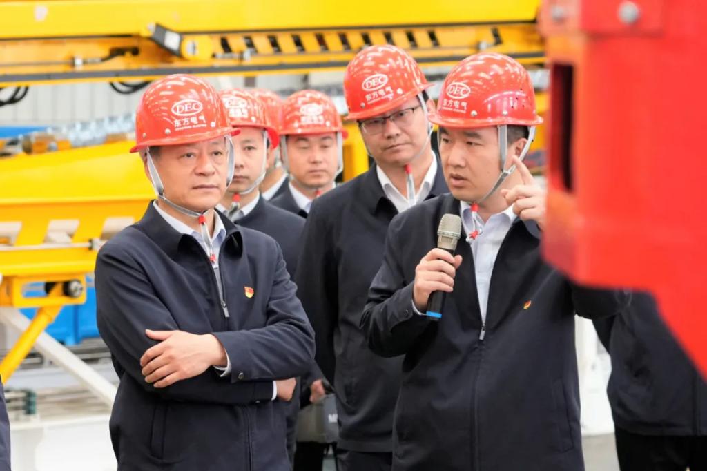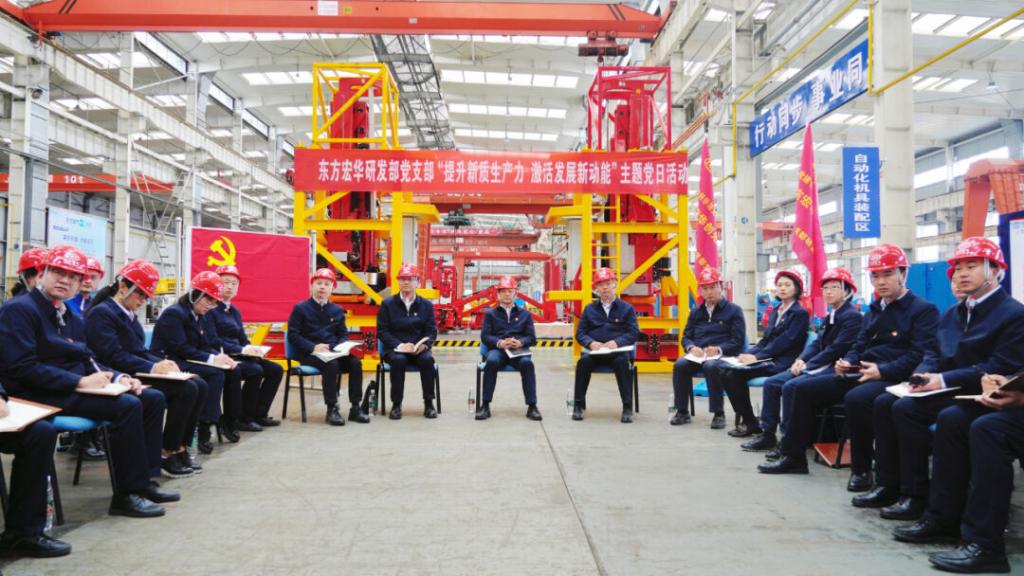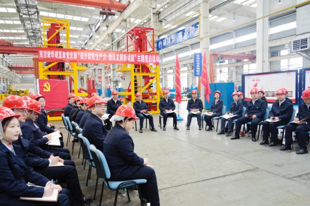 本網訊 4月9日,東方電氣集團黨組書記、董事長俞培根參加聯系基層黨支部——東方宏華研發部黨支部“提升新質生產力,激活發展新動能”主題黨日活動。研發部黨支部黨員代表、青年代表和黨外人士代表參加活動。活動采取沉浸式與互動式相結合的方式,在東方宏華零部件車間現場開展。