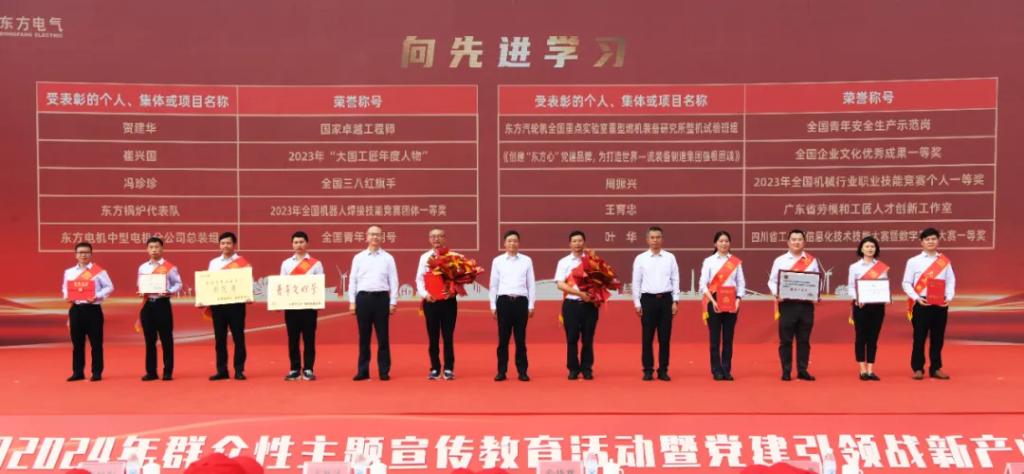 俞培根強調,今年是新中國成立75周年,是實現“十四五”規劃目標任務的關鍵一年,也是東方電氣集團連續開展群眾性主題宣傳教育活動的第三年,全集團干部職工要牢記領袖囑托,在弘揚“東汽精神”中矢志奮斗。要擦亮政治底色,保持姓黨為民、矢志報國的政治本色,要厚植發展初心,不忘產業報國初心,推動制造強國建設、維護能源安全,要永葆精神動力,將“東汽精神”轉化為加快發展新質生產力,推動戰新產業突破發展的強大動力。