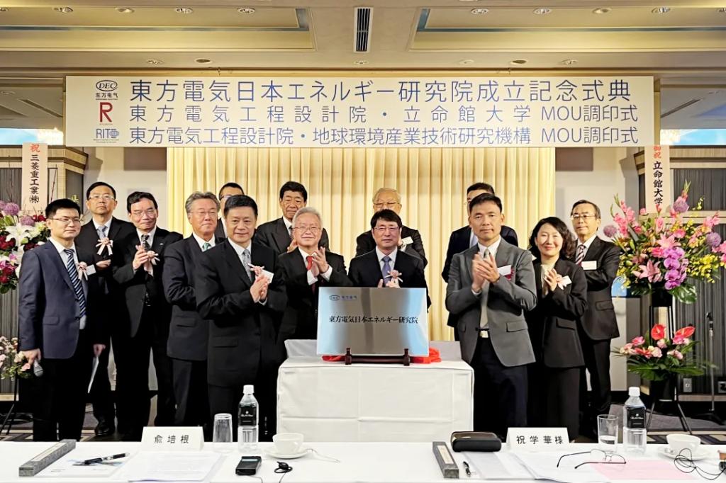 儀式上,東方電氣股份有限公司副總裁李建華與立命館大學、地球環境產業技術研究機構代表分別簽署合作備忘錄。