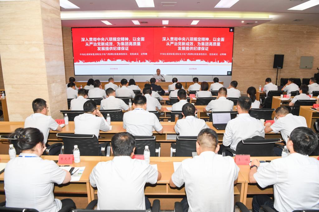 集團公司董事、黨組副書記張少峰以《以案為鑒知敬畏,作風建設(shè)再出發(fā)》為題,面向東方共享職能部門黨支部、黨校(培訓中心)黨支部、東方財務(wù)黨支部全體黨員講授專題黨課。張少峰強調(diào),黨的作風關(guān)系黨的形象、關(guān)系人心向背,紀律規(guī)矩是帶電的高壓線,必須嚴守紀律規(guī)矩、涵養(yǎng)優(yōu)良作風。張少峰要求,要堅決服務(wù)國家戰(zhàn)略,聚焦集團公司“六電六業(yè)”戰(zhàn)略布局,履行好黨和國家賦予的使命任務(wù);要勇于發(fā)揚斗爭精神,提高斗爭本領(lǐng),貫徹落實好黨中央和集團公司決策部署;要大力弘揚優(yōu)良作風,以此次學習教育為契機,堅決貫徹落實中央八項規(guī)定精神,鍥而不舍糾“四風”樹新風,持續(xù)營造風清氣正的良好氛圍。